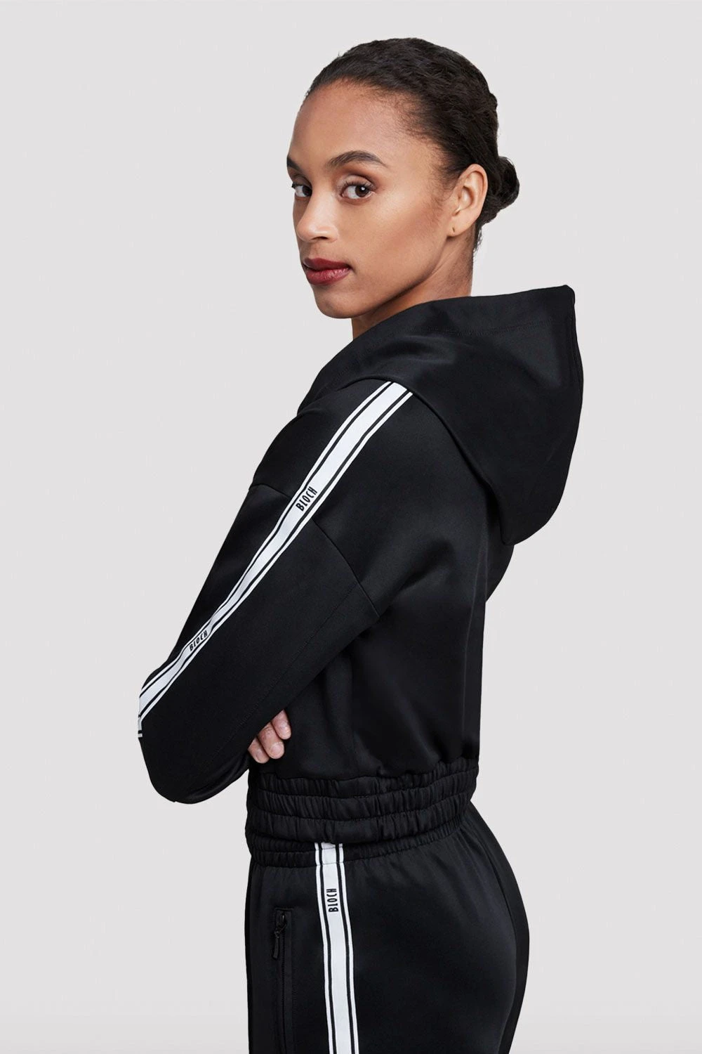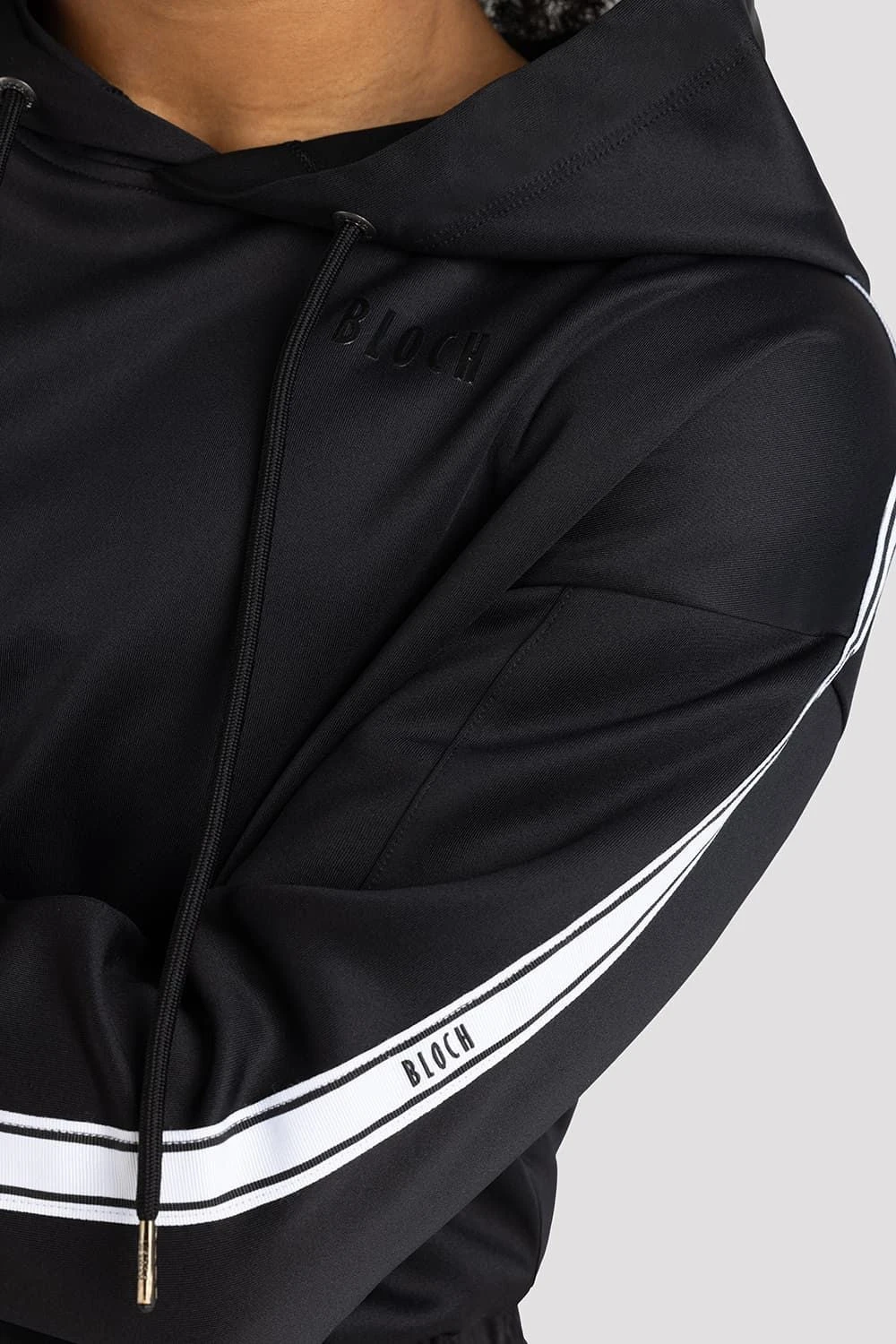 Keep warm and stylish in our Adult Bloch Logo Studio Hoodie, created to be your perfect studio essential. Featuring branded BLOCH trim along the long sleeve arms, cropped length with hood drawstring and rib cuff detailing. Style with our Adult Bloch Logo Track Pant for a complete studio look. Our Studio Tracksuits, designed to keep up with your every move featuring lightweight material with built-in stretch.