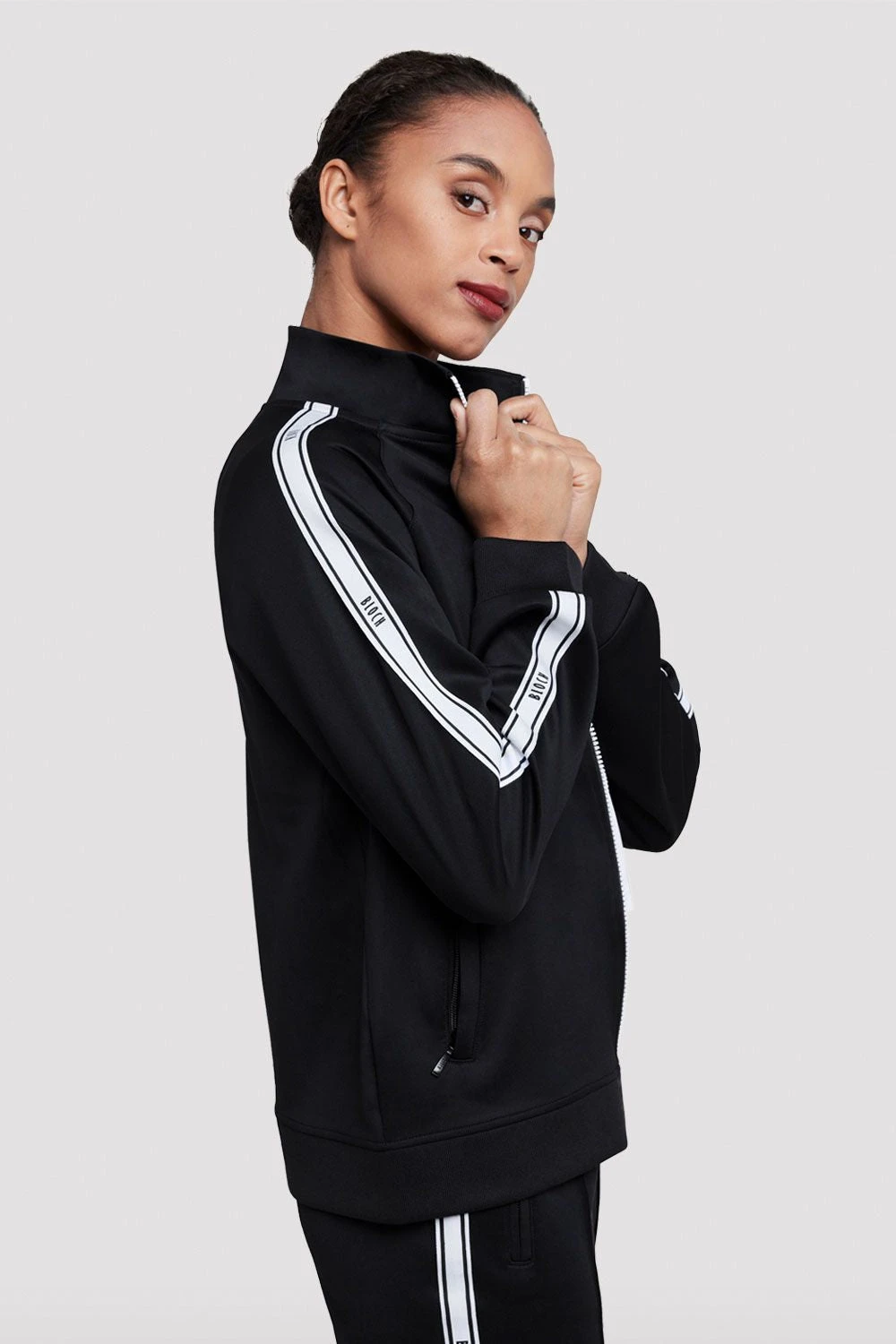 Keep warm and stylish in our Adult Bloch Logo Track Jacket, created to be your perfect studio essential. Featuring a zip front fastening, branded BLOCH trim along the long sleeve arms and side pockets for holding your essentials. Style with our Adult Bloch Logo Track Pant for a complete studio look. Our Studio Tracksuits, designed to keep up with your every move featuring lightweight material with built-in stretch.