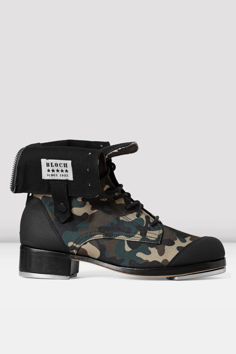 Introducing our latest tap boots; our Adult Bravo Camo Tap Boots featuring a camouflage printed upper in a boot style for an urban feel. Tested and trialled by superstar tap duo Chloe & Maud, these boots have multiple styling options to enhance your performance while providing industry leading tone and resonance. The key features of this boot are the zipper on the back which can be worn zipped up or down, in addition to its secure foot strap which hugs the arch of the foot, whilst allowing full ankle flexibility.Â
