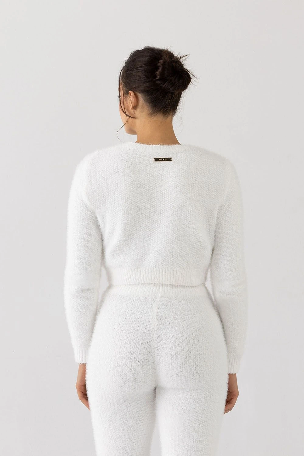 Stay cozy and stylish with our Bloch Popcorn Stitch Crop. Designed for dancers, this crew neck crop is the perfect off-duty staple. Made with stretch, the yarn is ultra-soft and plush to the touch and made for a flattering fit. The long sleeves offer extra coverage and warmth, making it a must-have for chilly days.