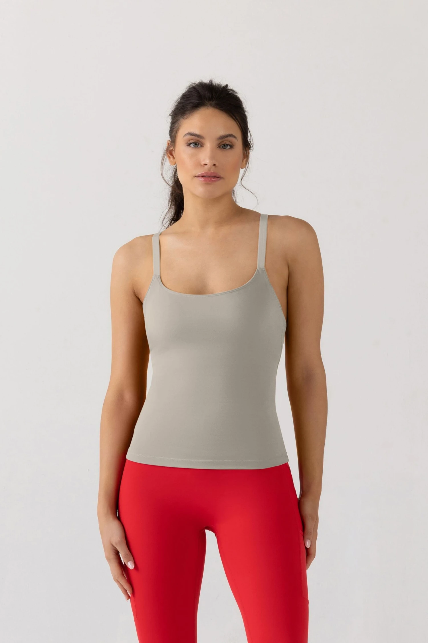 Perfect for when you’re on the go. With a built-in internal shelf bra and adjustable straps, our scoop neck camisole top which finishes just below the waist can be worn from the gym to work, or brunch. Made from our signature stretch fabric and with a soft finish, this camisole will become your go-to for both workouts and leisure.