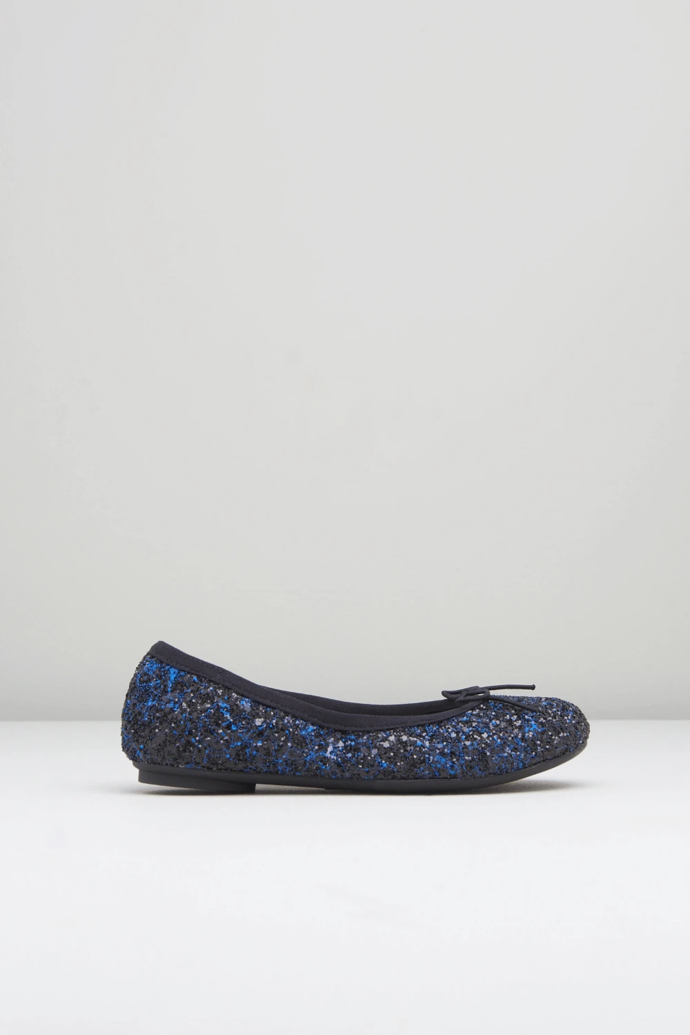 Our Girls Helia Ballet Flats feature a classic design with a microfiber upper and glitter finish that is super durable. Crafted for all day comfort, our Ballet Flats are the perfect shoe for on the go with its cushioned teardrop heel and elasticated drawstring allowing for a customisable fit.
