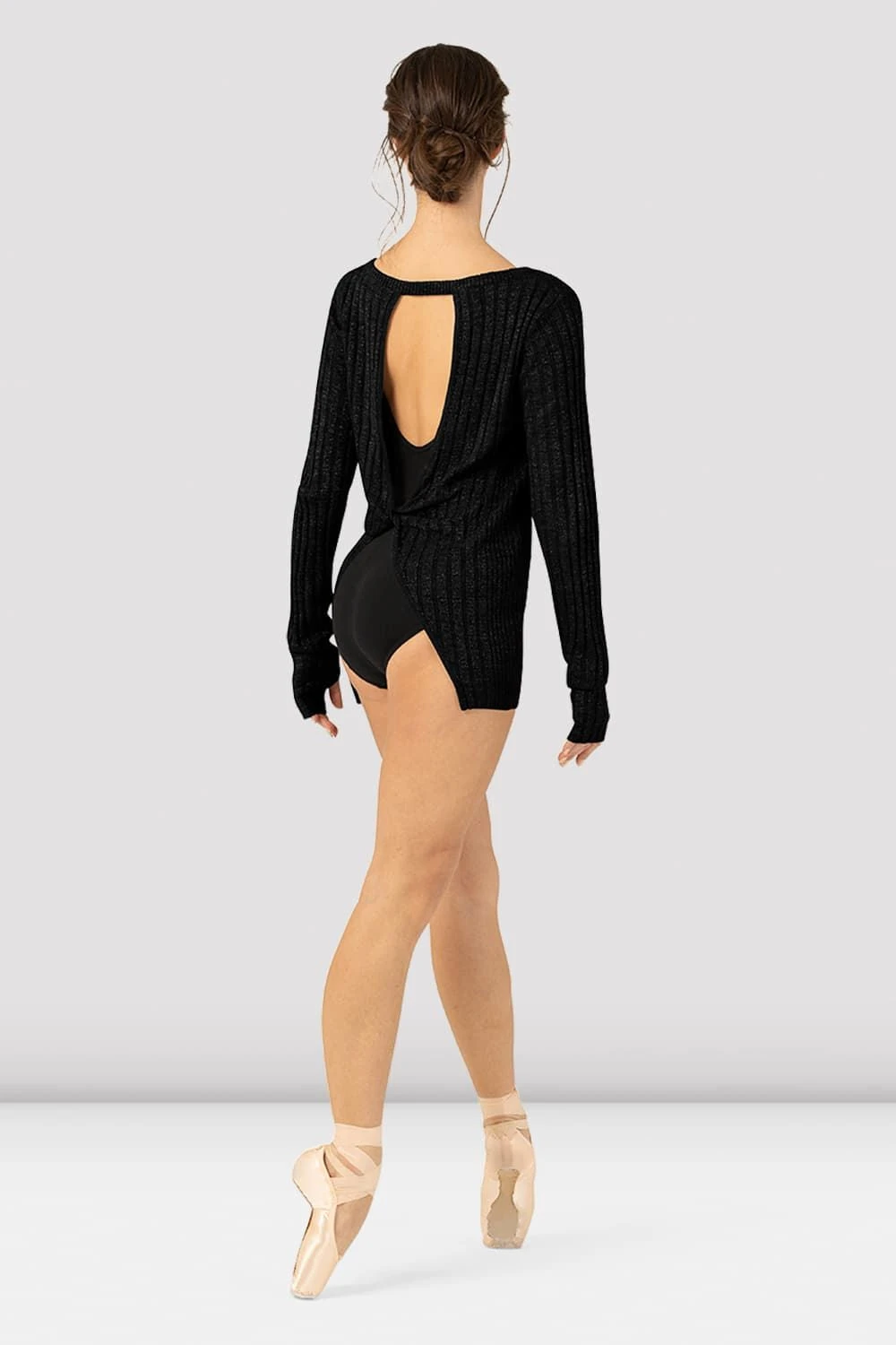 Our Ladies Amore Twist Back Sweater is the perfect addition to your warm-up wardrobe; featuring a scoop neck with open twist back and long sleeves with thumbholes.